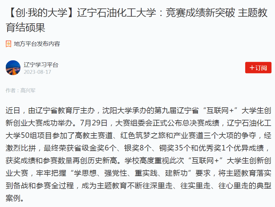 编者按:近日,学习强国辽宁学习平台、人民日报客户端·人民号对我校高度重视“互联网+”大学生创新创业大赛,牢牢把握“学思想、强党性、重实践、建新功”要求,将主题教育落实到备战和参赛全过程,成为主题教育不断往深里走、往实里走、往心里走的典型案例作了报道。现将相关报道转载如下: