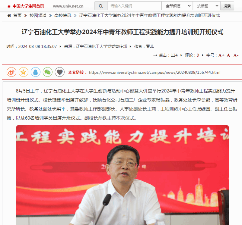 编者按:8月8日,辽宁日报·辽望号、中国大学生网、人民日报客户端·人民号、搜狐号对我校在大学生创新与活动中心智慧大讲堂举行2024年中青年教师工程实践能力提升培训班开班仪式进行了宣传报道。现将相关报道转载如下:
