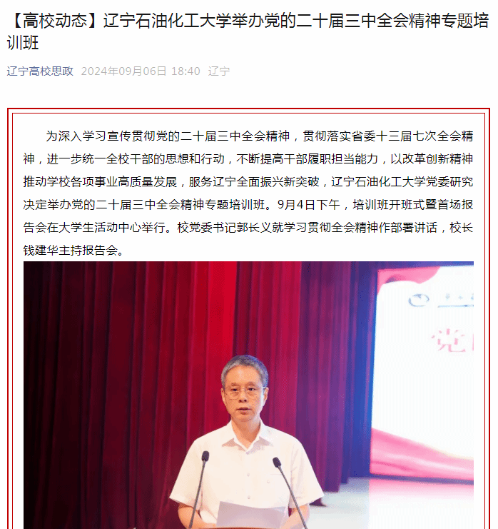 编者按:近日,辽宁高校党建微信公众号、辽宁高校思政微信公众号对我校举办党的二十届三中全会精神专题培训班进行了刊发报道。现将相关报道转载如下: