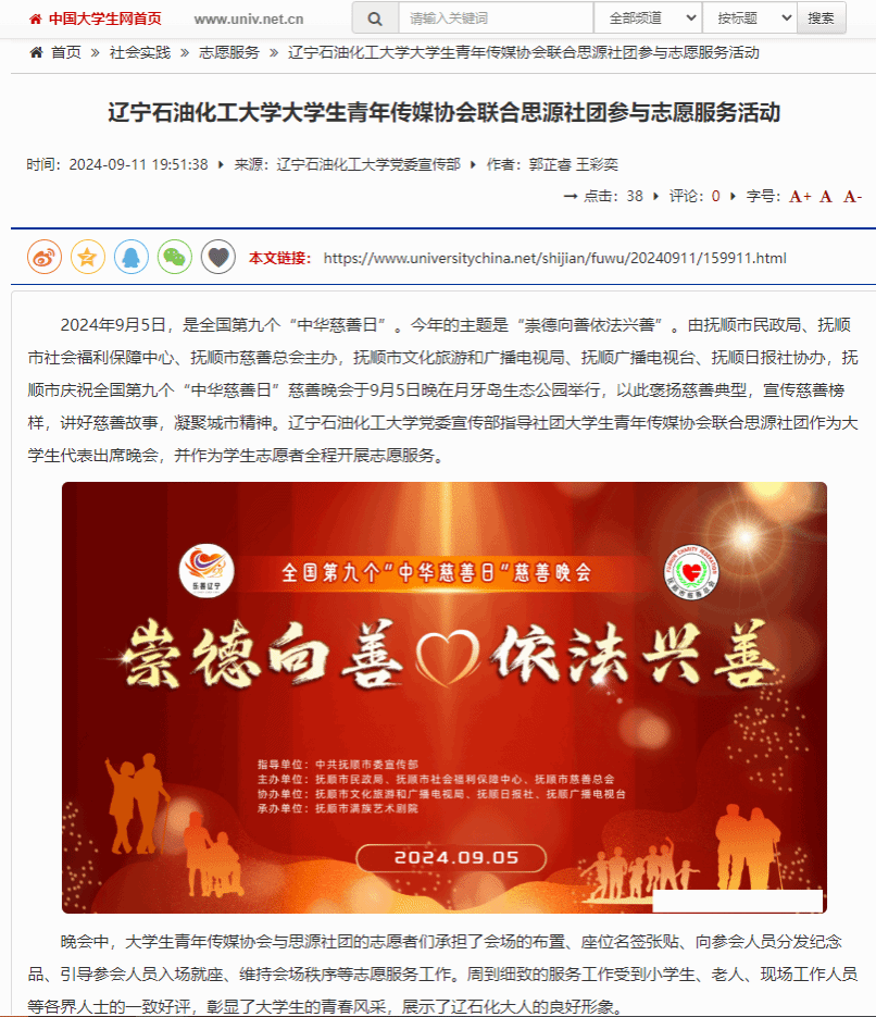 编者按:2024年9月5日,是第九个“中华慈善日”。今年的主题是“崇德向善依法兴善”。由抚顺市民政局、抚顺市社会福利保障中心、抚顺市慈善总会主办,抚顺市文化旅游和广播电视局、抚顺广播电视台、抚顺日报社协办,抚顺市庆祝第九个“中华慈善日”慈善晚会于9月5日晚在月牙岛生态公园举行,以此褒扬慈善典型,宣传慈善榜样,讲好慈善故事,凝聚城市精神。国产亚洲综合一区二区三区_亚洲欧美日韩中文天堂_尤物在线观看视频不卡无码_国产最新精品亚洲2025不卡_亚洲成Av人在线观看片水蜜桃党委宣传部指导社团大学生青年传媒协会联合思源社团作为大学生代表出席晚会,并作为学生志愿者全程开展志愿服务。中国大学生网、人民日报客户端•人民号、搜狐号对此进行了宣传报道。现将相关报道转载如下: