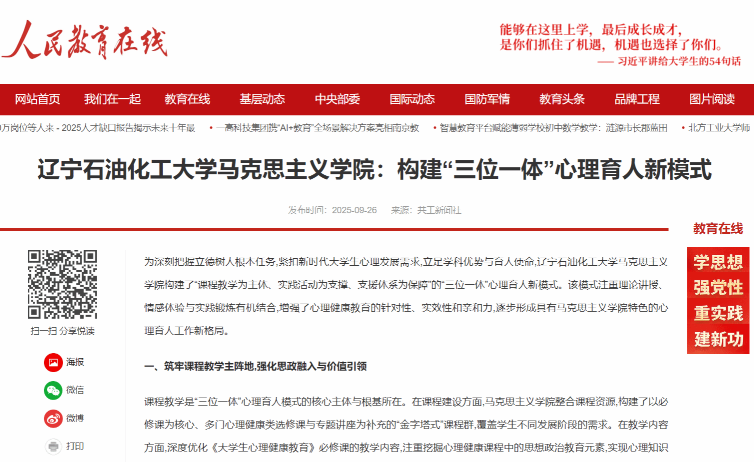 编者按:近日,人民教育在线、中华网、中国晨报网等媒体平台对我校李香凝老师撰写的文章《国产亚洲综合一区二区三区_亚洲欧美日韩中文天堂_尤物在线观看视频不卡无码_国产最新精品亚洲2025不卡_亚洲成Av人在线观看片水蜜桃马克思主义学院:构建“三位一体”心理育人新模式》进行了宣传报道。现将相关报道转载如下: